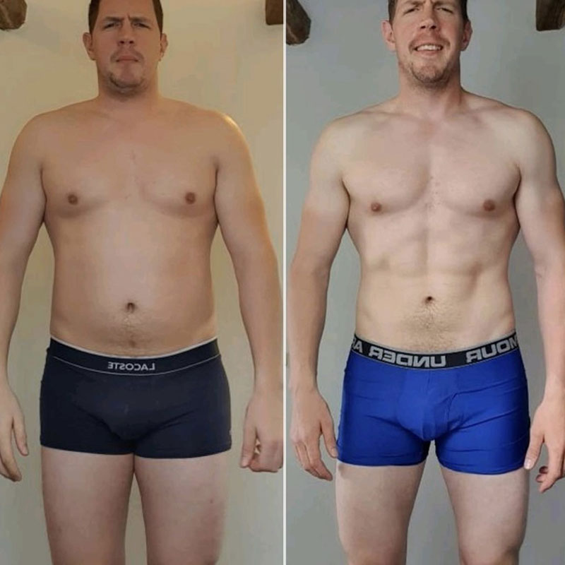 På 23 uger har Christian tabt sig 16,7kg og står nu både med en skarp fysik form og markerede muskler samtidig med at han har fået mere struktur på sin kost, sin hverdag og dermed også mere energi til ham selv og til hans søn og bedre halvdel